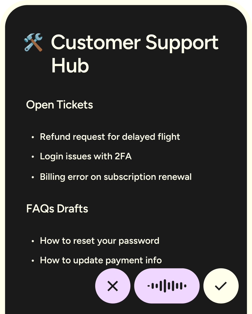 Smart voice-to-text that works inside every CS tool, so you can respond faster, sound better, and stay human.
